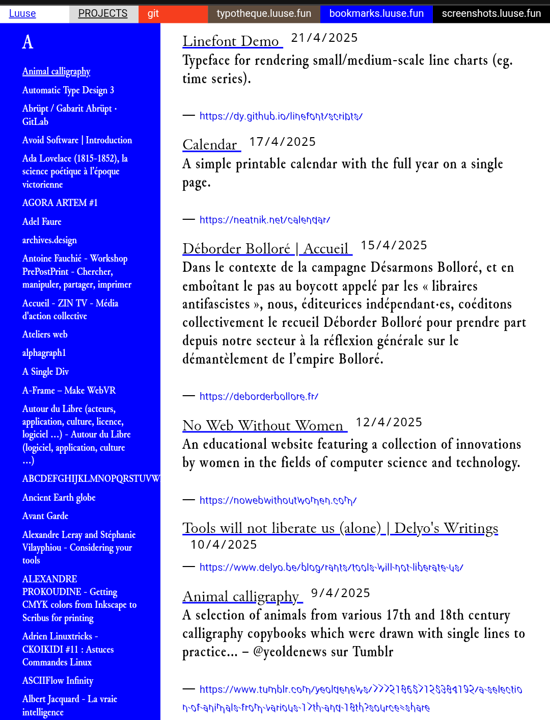 :kare_font_stack: bookmarks.luuse.fun