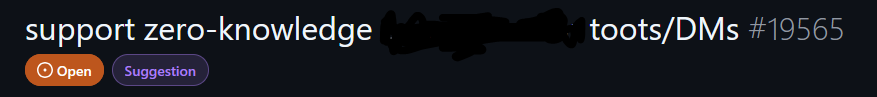 しゅいろ![Screenshot of edited github issue that now reads, "Support zero-knowledge toots/DMs #19565