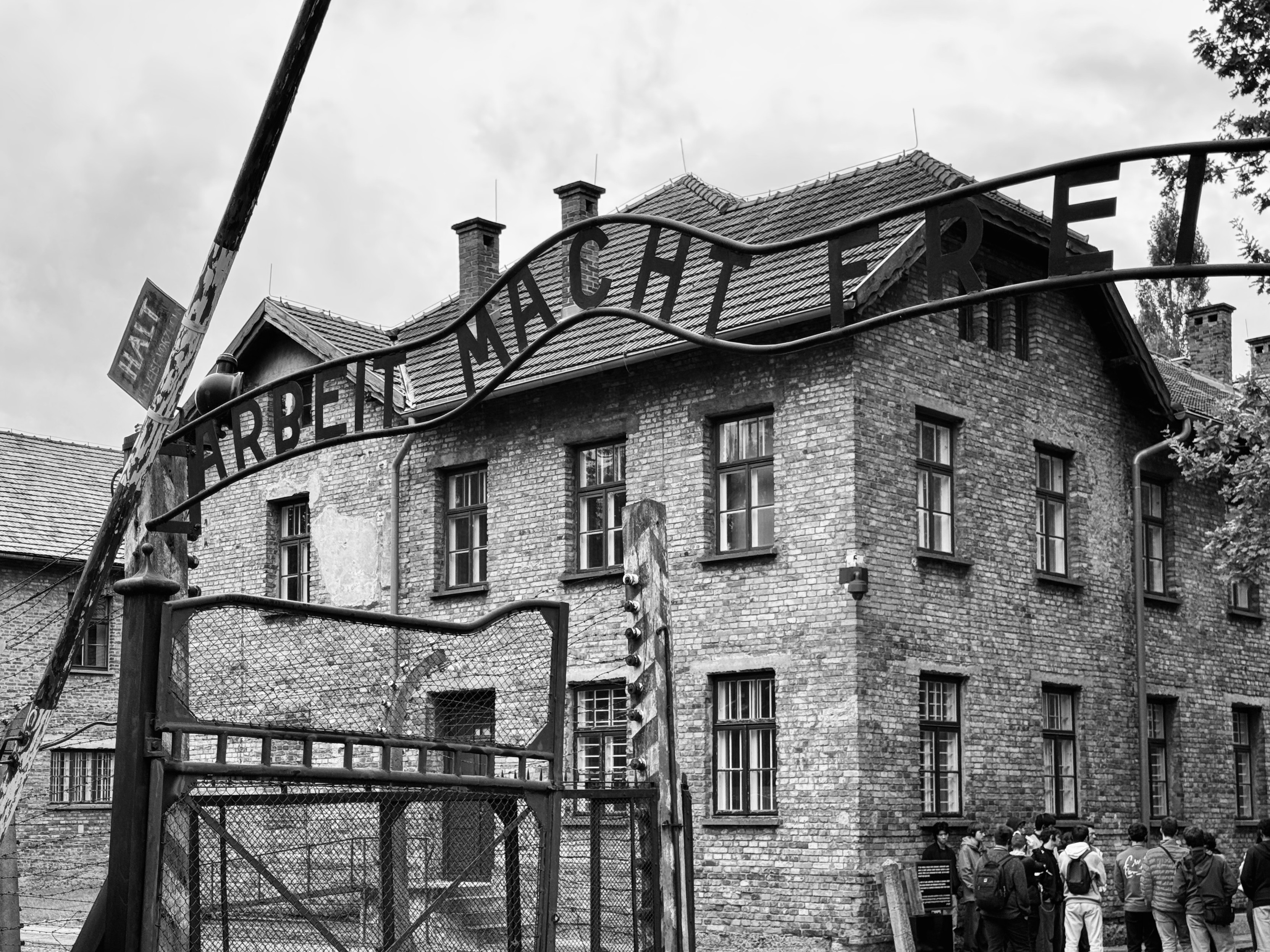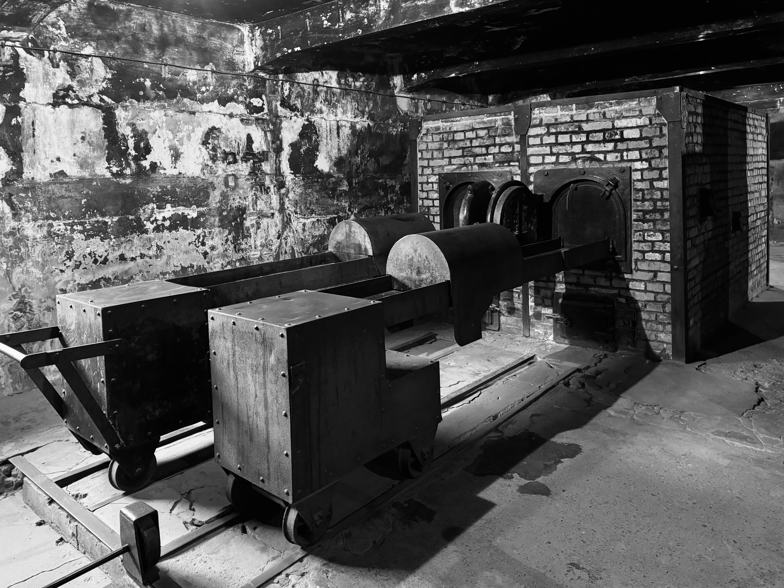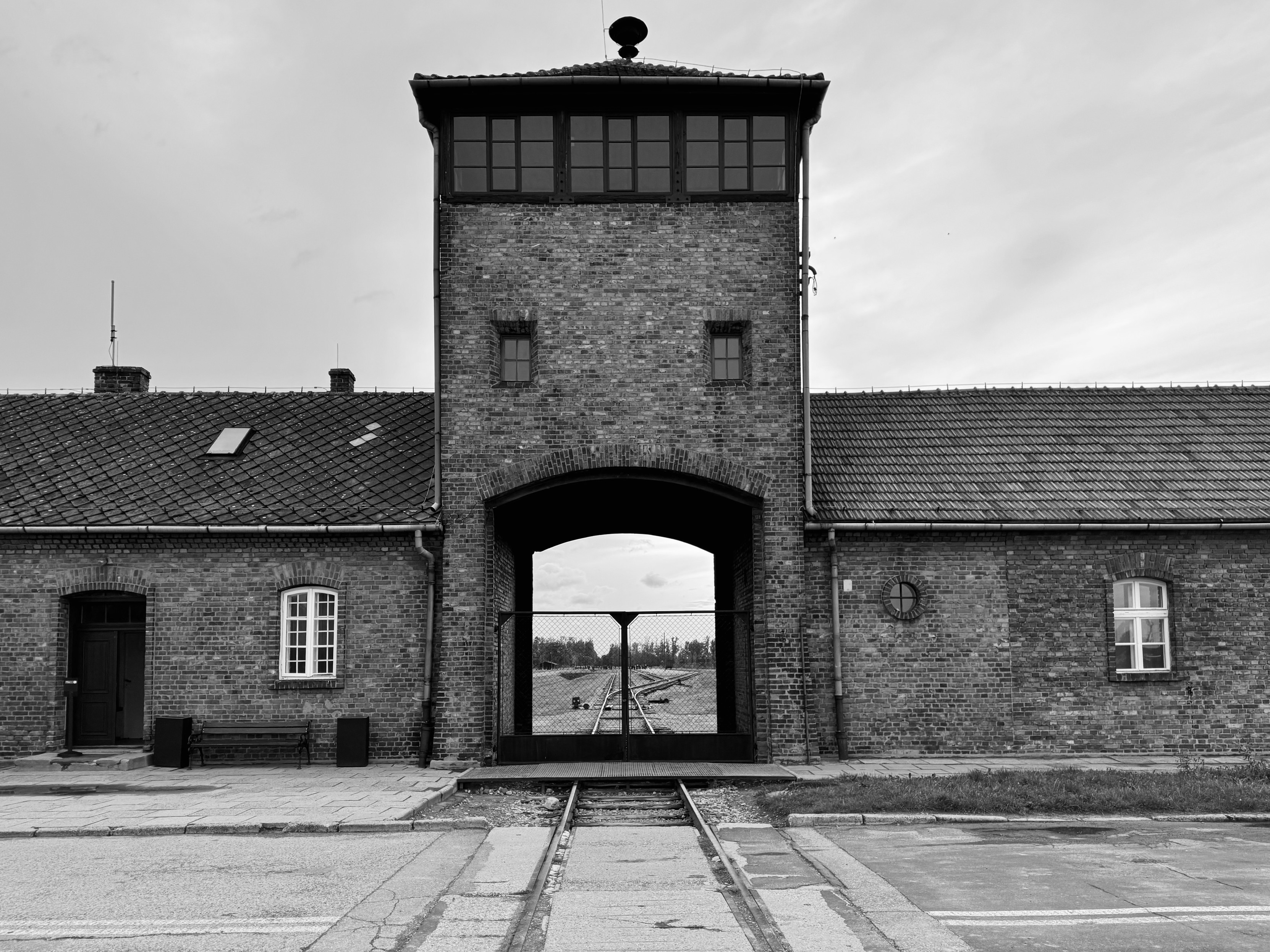 The main Auschwitz I entrance gate, as we saw at Dachau, carries the propoganda slogan „Arbeit macht frei” | “Work [will set you] free” (📷1). In reality, most were set free in the camp’s ovens (📷2). The gateway at Birkenau wasn’t a waypoint on a resettlement journey (📷3); for most it was simply the end of the line (📷4).