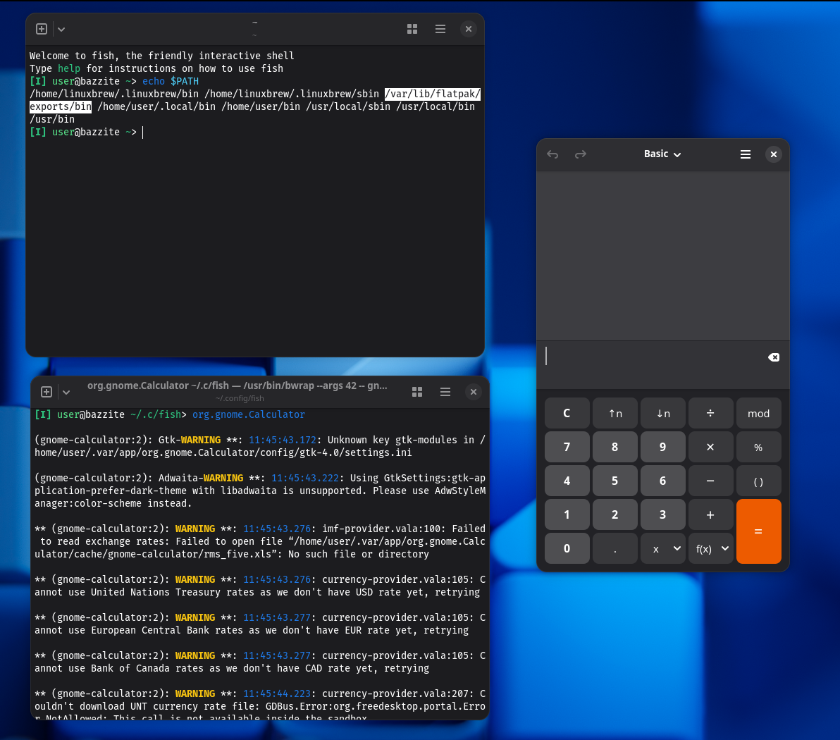 GNOME Calculator launched using the fish shell.