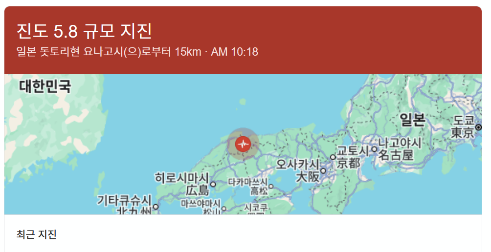 10時18分頃、島根県東部を震源とする地震がありました。地震の規模はM6.2程度、最大震度6弱程度と推定されています。この情報は気象庁の予報に基づく推定です。情報は誤差を含む場合があります。