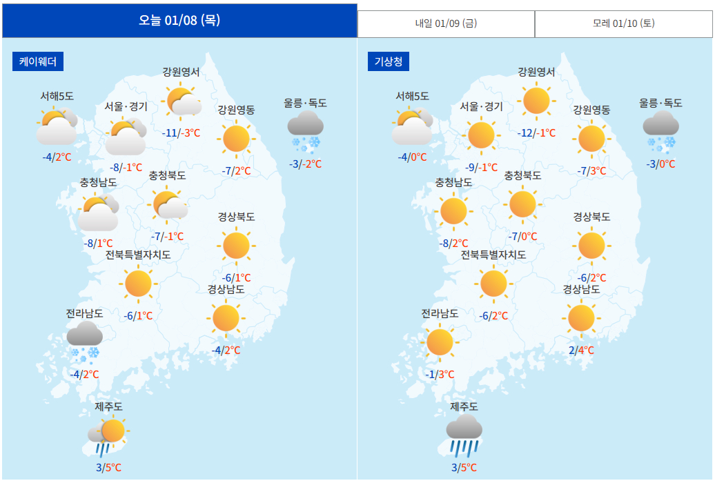 사실 그래놓고 남은 생의 마지막 20일간 내내 카페 다니고 영화 보고 마작 치고 음악 듣고 유곽까지 드나들었다는건 또 웃픈 일이긴 한데(...) 참 이중적인 면모기도 하고, 인간적인 면모기도 하고, 어떻게 보면 중2병이 늦게 온 거 아닌가 하는 생각도 듭니다. 이처럼 오늘 기온도 갑자기 달라졌어요. 어제부터 쌀쌀해지던 바람이 갑자기 칼바람이 되었는데요. 수도권 기준 어제보다 무려 10℃ 가까이 낮은 체감 -12.2℃를 기록하고 있습니다. 최저기온 차트 보시죠. 어제에 보라보라해진 한반도가 보입니다. 한파특보도 발령되었어요.