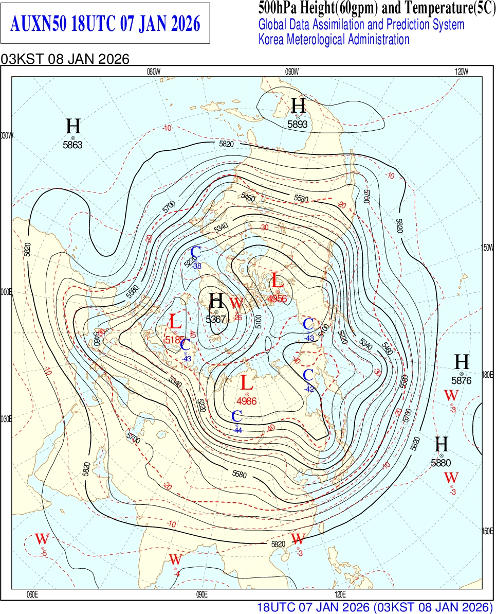 특히 이번 추위는 삼한사온이고 뭐고 없이 꽤나 오래 이어질 가능성 커보입니다. 우랄 블로킹과 오호츠크해 블로킹이 제대로 자리를 잡고 멈춰 있는 것이 보입니다. 그 덕분에 동아시아 상공에 절리저기압이 정체 상태로 머무르며 한기를 계속 끌어내리고 있죠. 당분간 꽤나 심각한 강추위가 예상됩니다. 서해안 지역에는 해기차에 의한 눈구름이 계속 발달할 걸로 보이는데, 아직 가능성은 낮지만 대설 상태로 넘어설 가능성도 있으니 주의 당부드립니다. 내일은 우산 꼭 챙겨주시고, 추운 한 주 힘냅시다. 좋은 하루 되세요!