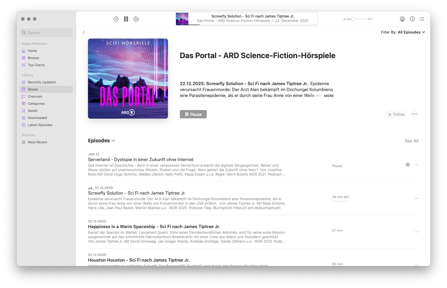 Das die ARD Audiothek keine RSS Feeds hat ist echt unglaublich! Da sind echt ein paar tolle Sendungen drin, aber ich will weder die Webseite noch deren App verwenden.