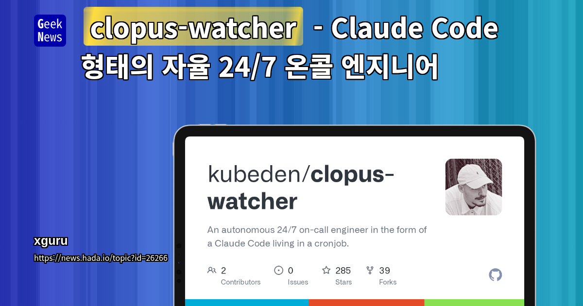 clopus-watcher - Claude Code 형태의 자율 24/7 온콜 엔지니어
