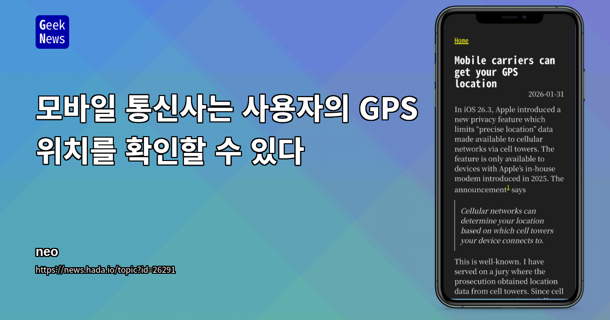 - iOS 26.3은 *셀룰러 네트워크에 제공되는 정밀 위치 데이터* 를 제한하는 새로운 개인정보 보호 기능을 도입함