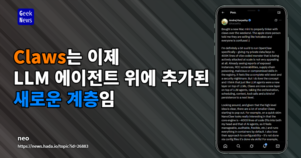 Claws는 이제 LLM 에이전트 위에 추가된 새로운 계층임