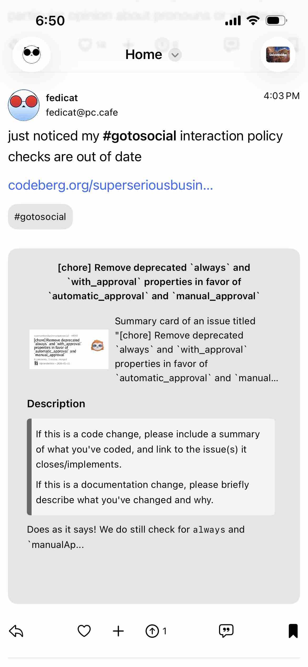<p>Hey <a href="https://cosocial.ca/@evan">@<bdi>evan@cosocial.ca</bdi></a>, I'm watching your lightning talk at FOSDEM! I'm simultaneously glad it's less than 10 minutes, but sad it's not longer too :stuck_out_tongue_closed_eyes:</p> <p>(Everyone else, want to watch it? <a href="https://ftp2.osuosl.org/pub/fosdem/2026/h2215/WNDQUQ-tags-pub.mp4" rel="nofollow ugc">Here it is</a>)</p> <p>Some questions I'm jotting down while I'm watching it [...]</p>