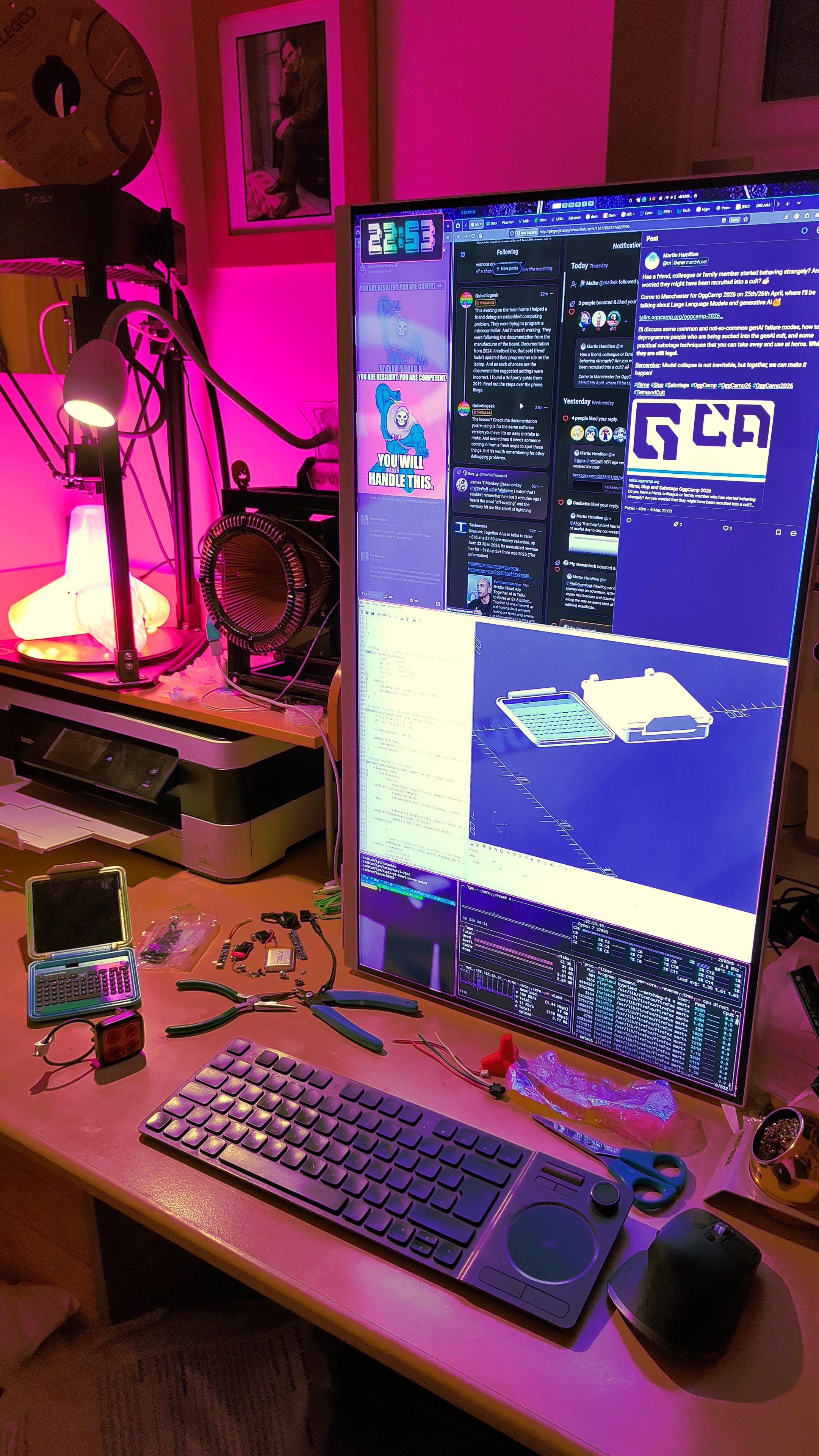 ![This is a pop-up window titled "Follow This Blog" with the subtext "Get new posts delivered straight to your Mastodon timeline — no algorithms, no ads, no email inbox clutter. Just chronological blog posts from a fellow human." It has two main sections: the first section states "1 Already on Mastodon? Enter your server below:" with a text input field displaying "[@] mastodon.social" and a green "Follow" button below it. The second section states "2 New to Mastodon? It's a social network where you are in control." followed by three bullet points: "No ads, no algorithms deciding what you see" with a red circle icon, "Your feed is just posts from people you follow, in order" with a purple square icon, and "No company owns your account — you can move it anytime" with an orange lock icon, along with a green button labeled "Create a free account →". Below these sections, under the heading "OTHER OPTIONS", are buttons labeled "RSS Feed" and "Substack", each accompanied by a small icon. The window also has an "X" button in the top right corner to close it.](https://media.hachyderm.io/media_attachments/files/116/206/471/606/849/265/original/c36b1b3f6f382e4f.png)