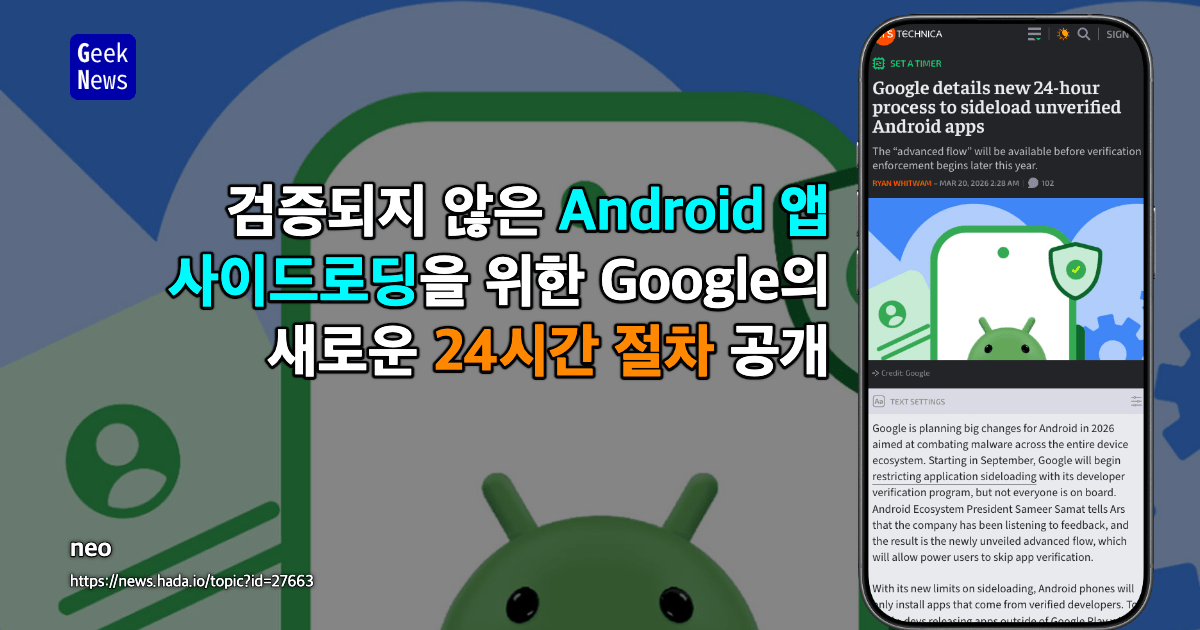 검증되지 않은 Android 앱 사이드로딩을 위한 Google의 새로운 24시간 절차 공개 | GeekNews