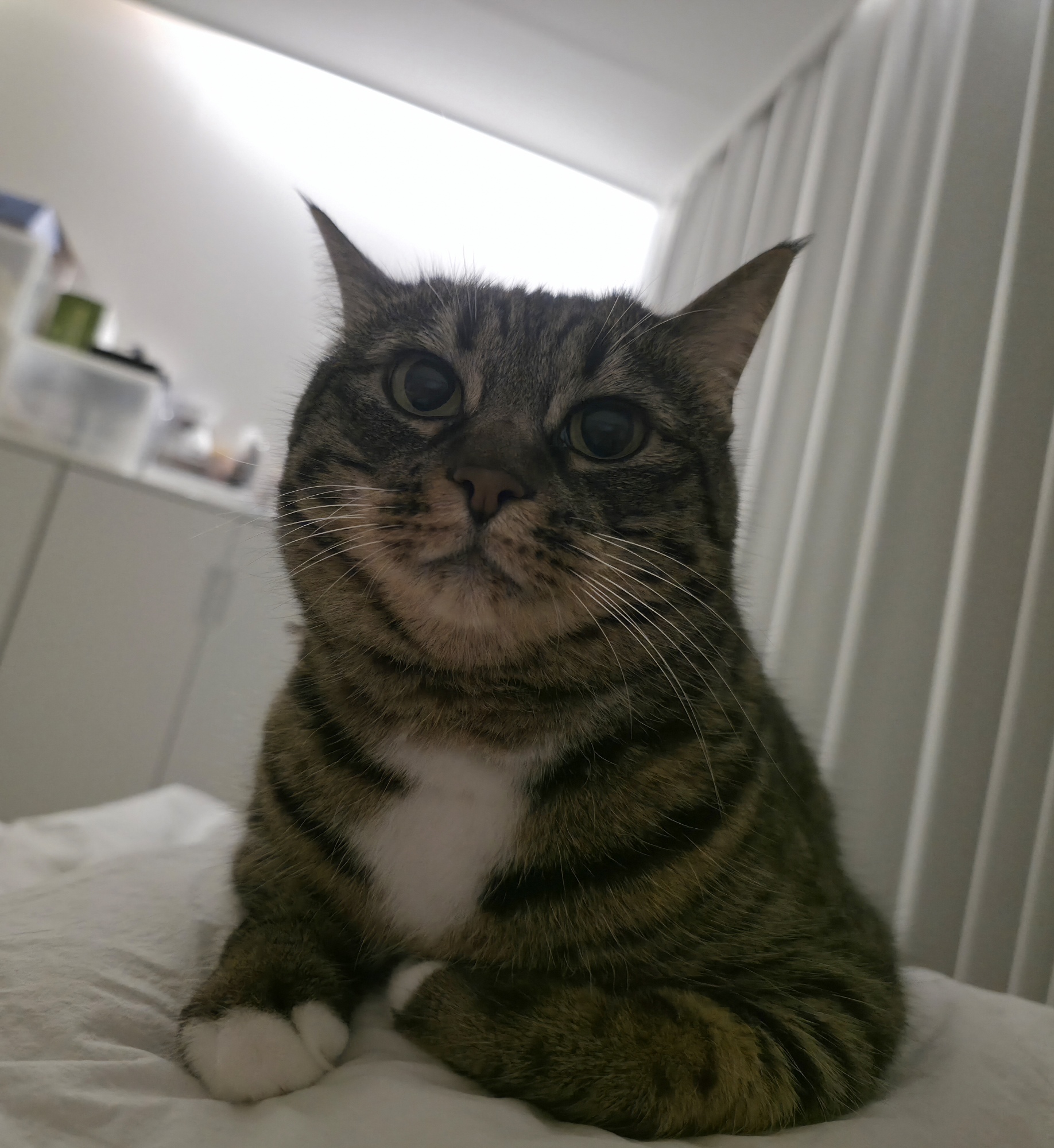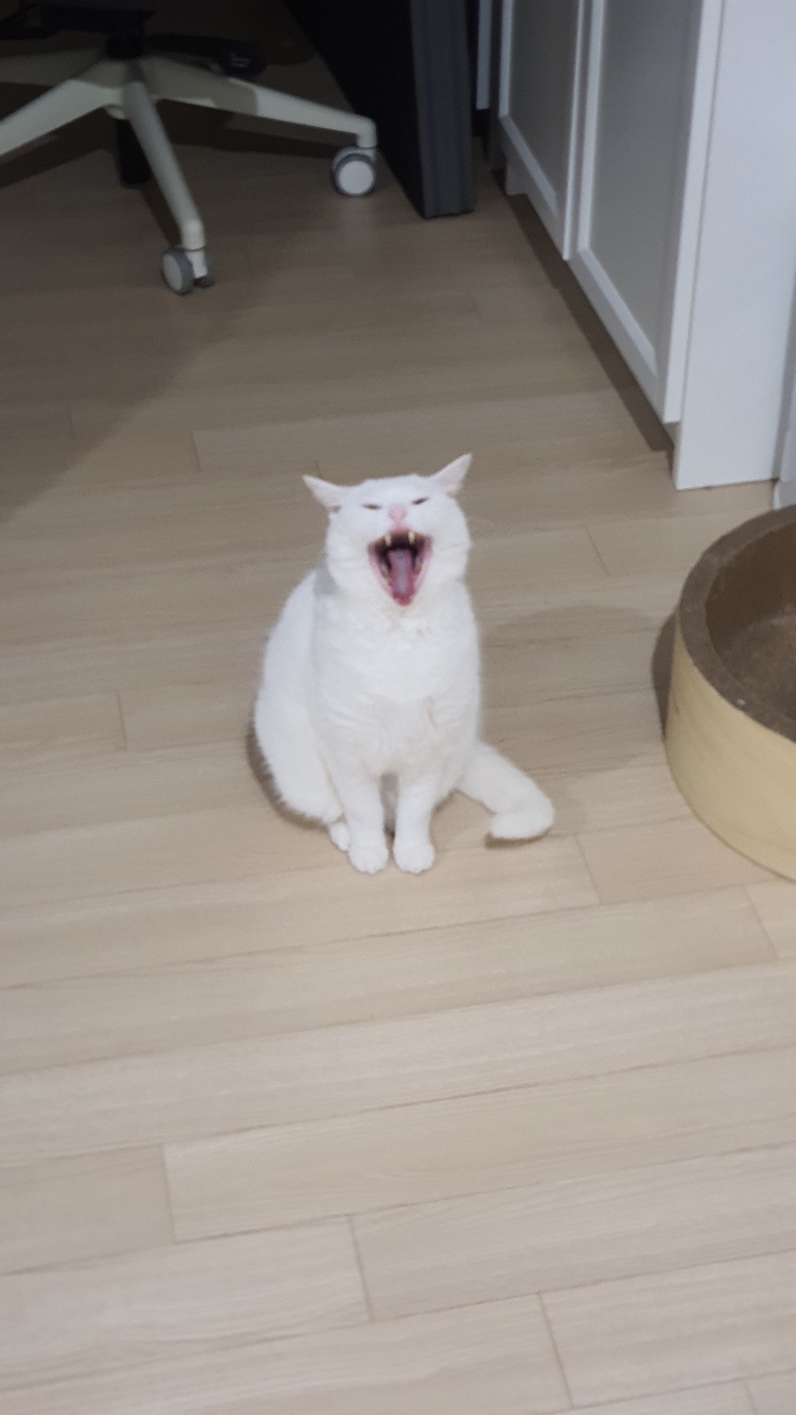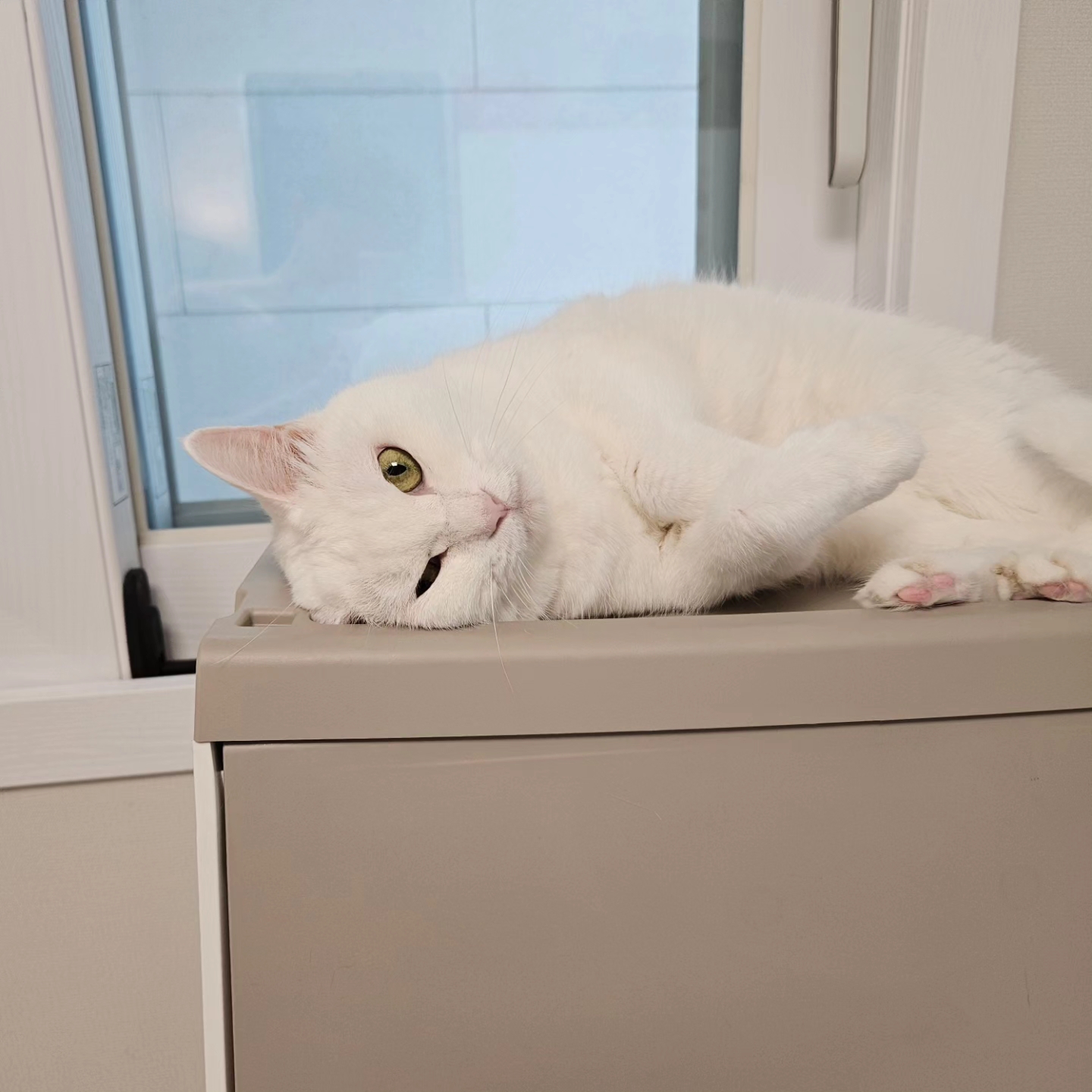 이 하얀 고양이는 일대 길냥이들을 돌보던 대학생을 끝까지 따라가 자취방에 무단 침입 하였으며 (다른 대학생이 병원비 낼 돈이 없어 길바닥에 버린 것으로 추정)