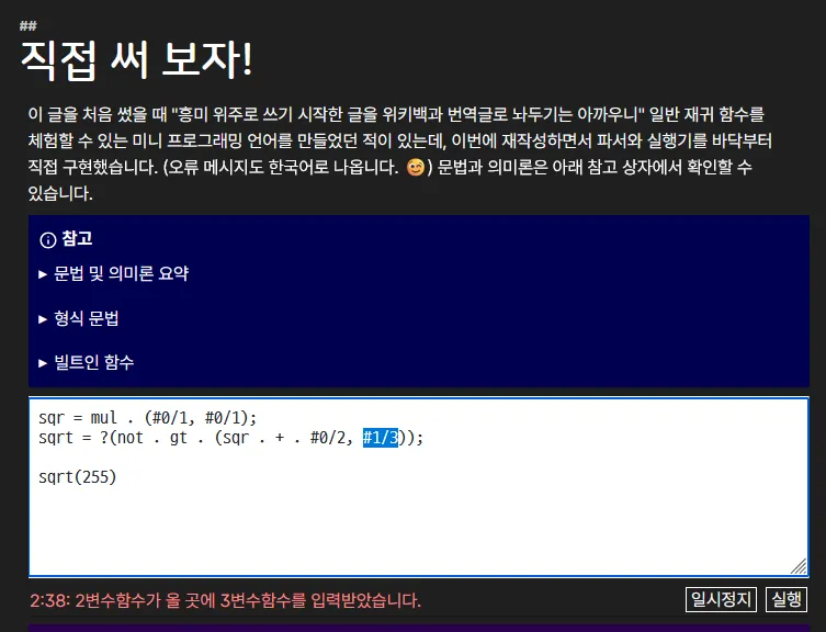 왜냐면 이 글을 재작성하고 있고 인터랙티브 부분이 복잡해서 타입 안정성은 웬만하면 챙기고 싶은데 타입스크립트도 안되고 ReScript도 안되고 굳이 Idris를 가져다 쓰는 건 오버킬같고...
