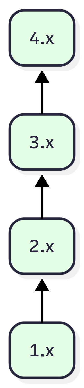 그런데 실제로 이를 조건 분기로 구현해보면 상당히 복잡해진다. 더 일반화된 방법이 필요하다. 버전 관계를 다시 정의해보자. 변환기를 기준으로 생각해보면 모든 버전 사이에 순서가 있다고 할 수는 없다. 버전을 poset으로 모델링해보면 어떨까? a ≺ b 관계가 성립하는 경우에는 b의 변환기를 이용해 a를 마이그레이션할 수 있다. 이 관계가 성립하려면 (1) a가 안정 버전이고, (2) b가 알파 버전이 아니고, (3) major(a) < major(b)이어야 한다.