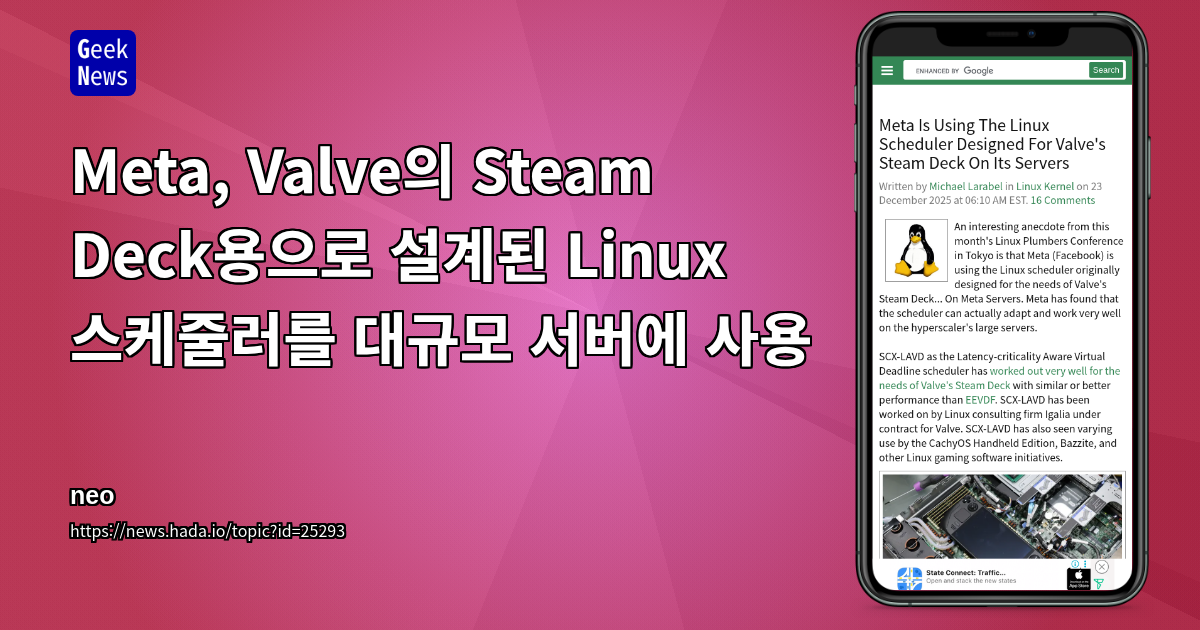 - Valve의 Steam Deck를 위해 설계된 *SCX-LAVD 리눅스 스케줄러* 가 Meta의 대규모 서버 환경에서도 효과적으로 작동한다는게 공개됨