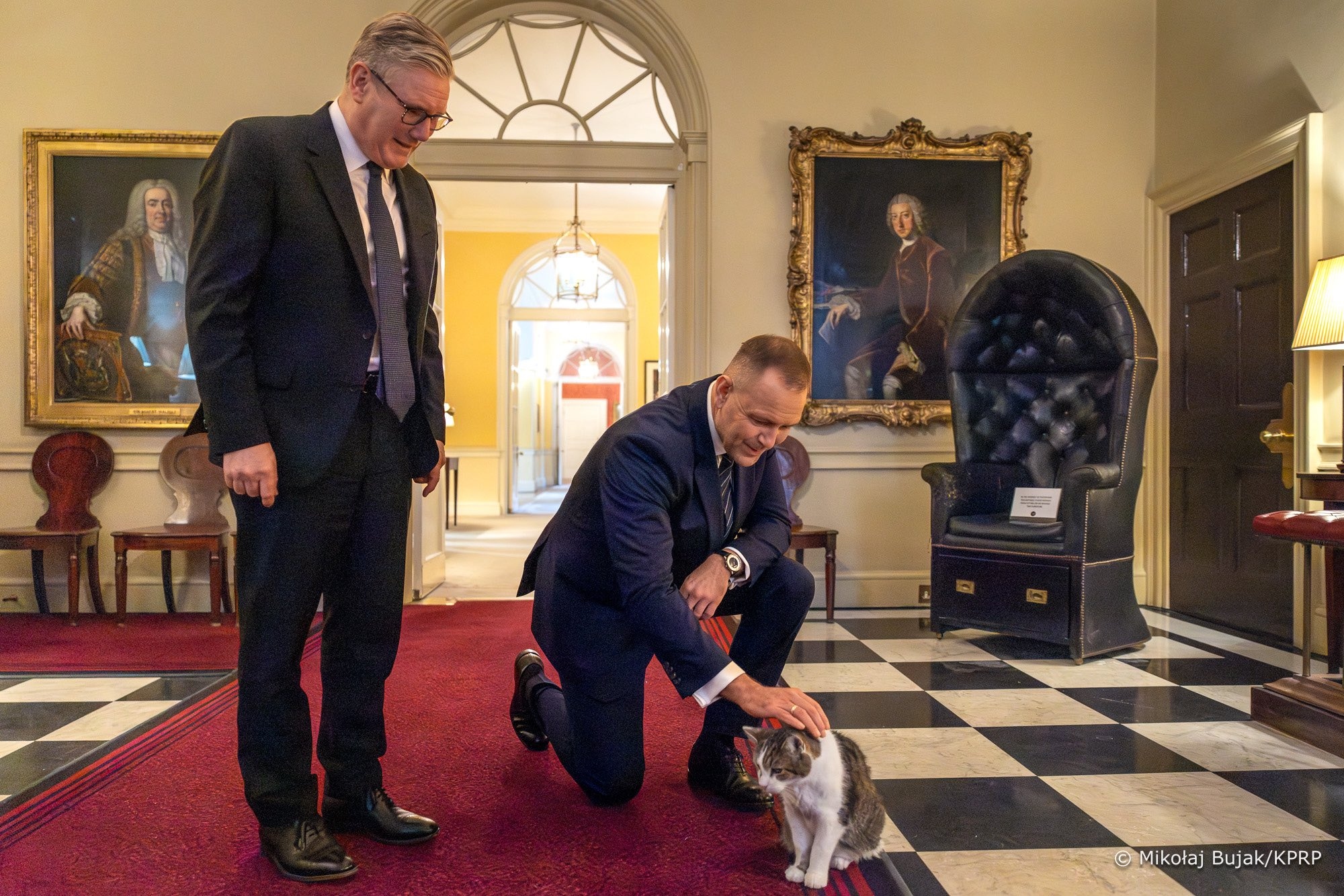 폴란드 대통령 사진 담당자가 영국 총리실 쥐잡이 보좌관 래리한테 걸려넘어졌다고. 뒤에 있는 사람이 폴란드 대통령...