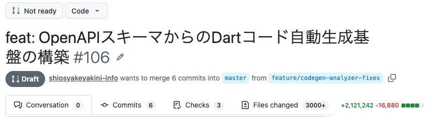 - `api.json`は取得する仕組みを整えて、実際に動作するのは手動でよいと思います。取得したjsonから、build_runnerでfreezedのコードを出力し、さらにfreezedが生成されるビルドチェーンの部分は、`build_runner build --delete-conflicting-outputs`で取得できるようにします。