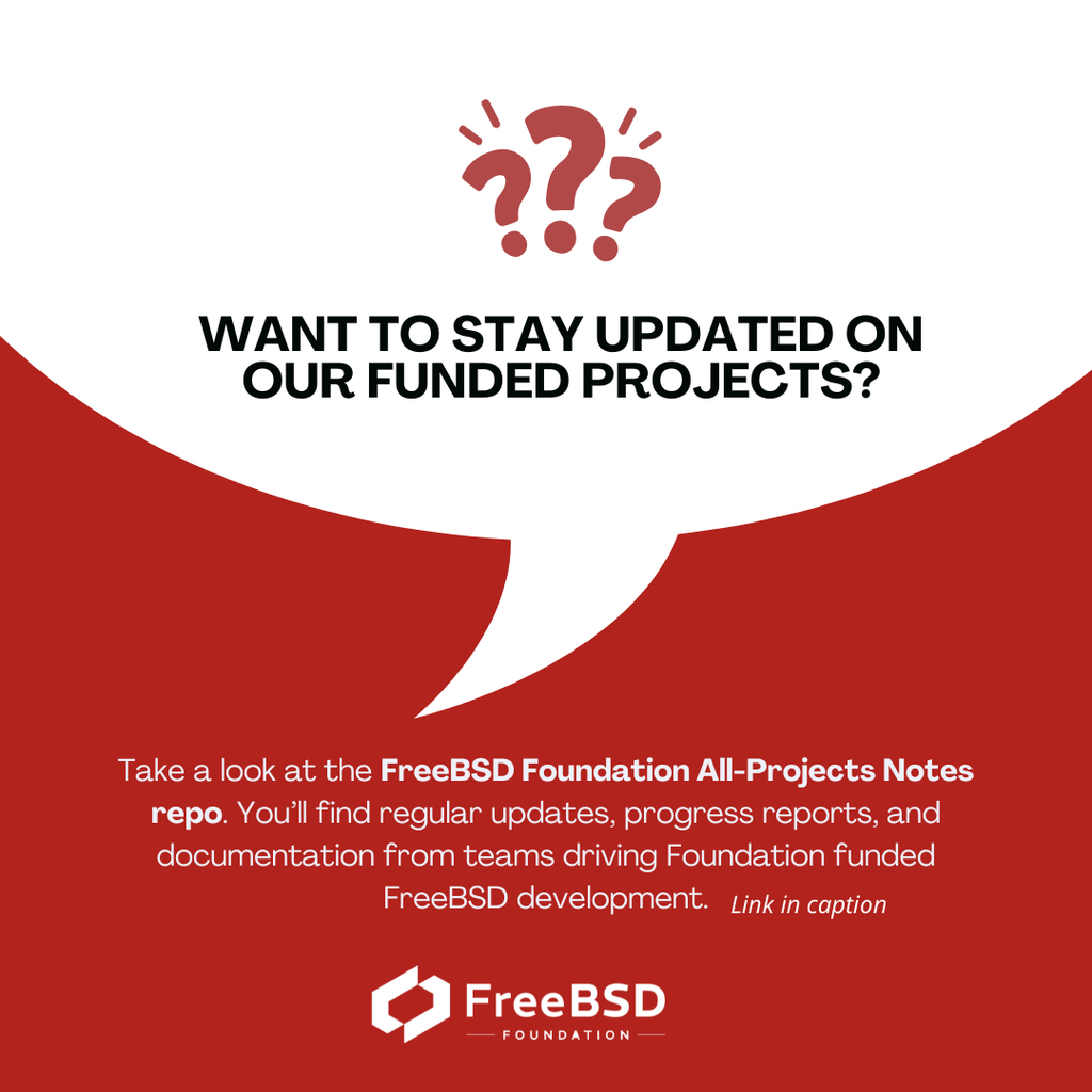 For those wanting a deeper dive into the inner workings of our funded projects, take a look at the FreeBSD Foundation All-Projects Notes repo.