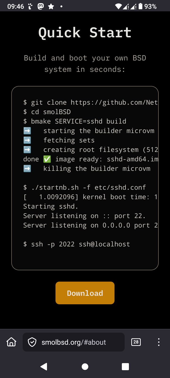TIL about the existence of smolBSD an amazing minimal BSD Unix system. It boots in {milli}seconds!