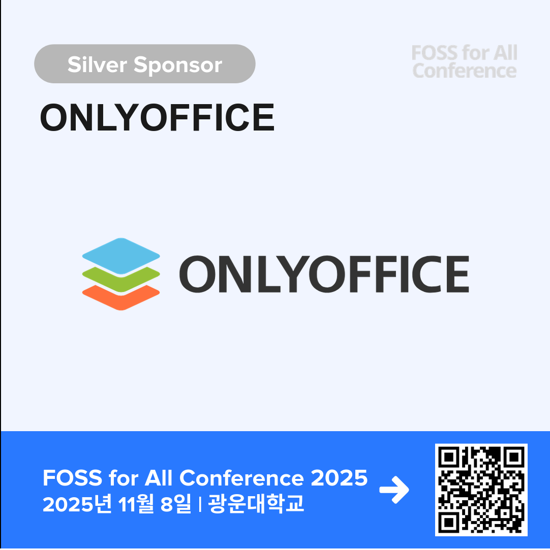 강력한 기능을 갖춘 #오픈소스 #오피스 스위트, #ONLYOFFICE 가 FOSS for All Conference 2025 Silver #후원사 로 참여합니다! 📝 #협업 과 #생산성 을 높이는 ONLYOFFICE의 솔루션을 확인하세요. 👉 참가 등록: https://event-us.kr/fossforall/event/110400 #FOSSforAll #오픈소스오피스 #협업툴