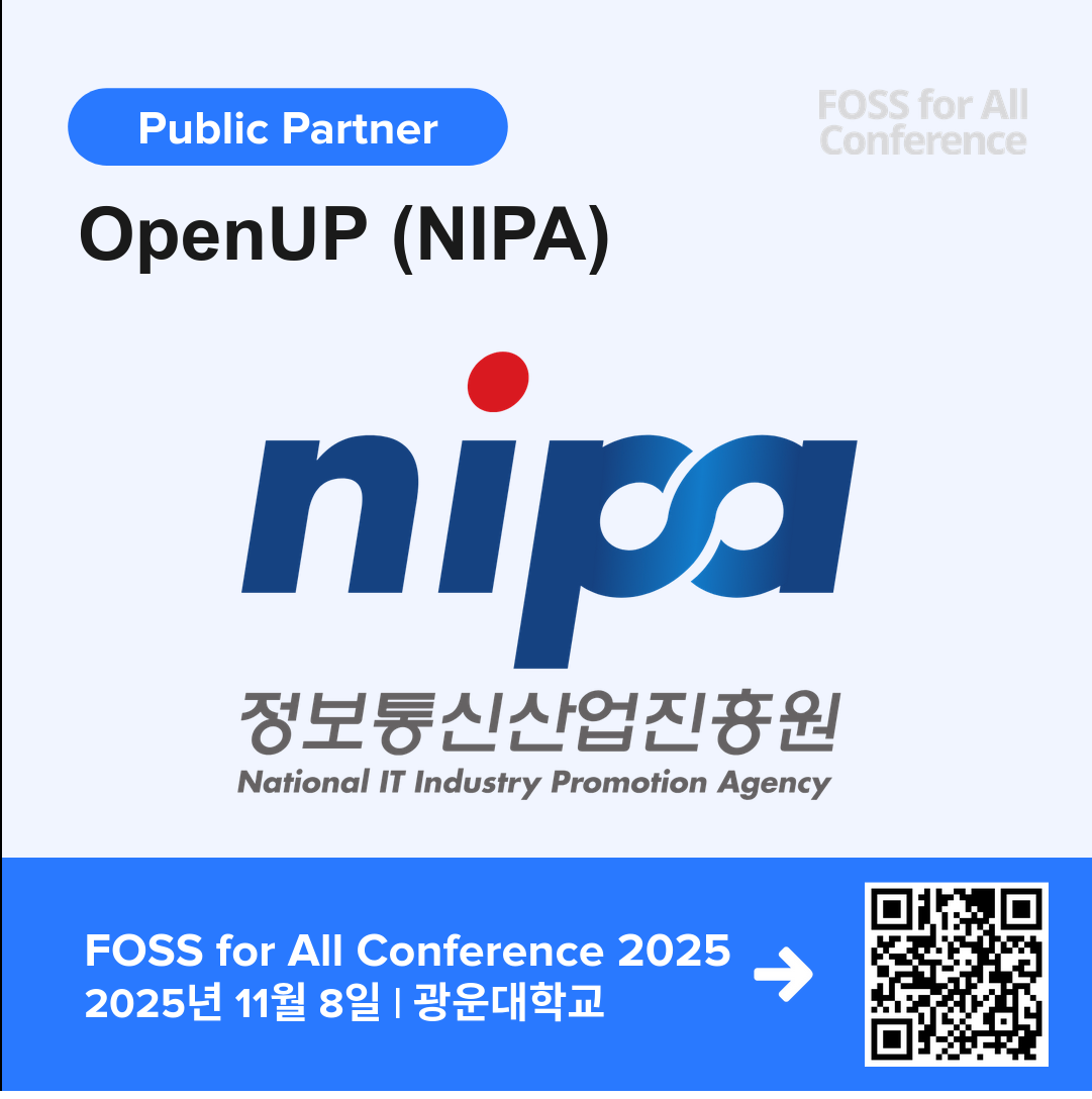 #국내 #오픈소스 산업 진흥과 오픈소스 커뮤니티 지원을 위한 기관인 #OpenUP #NIPA 가 FOSS for All Conference 2025에 #후원사 참여합니다! 👉 참가 등록: https://event-us.kr/fossforall/event/110400 #FOSSforAll